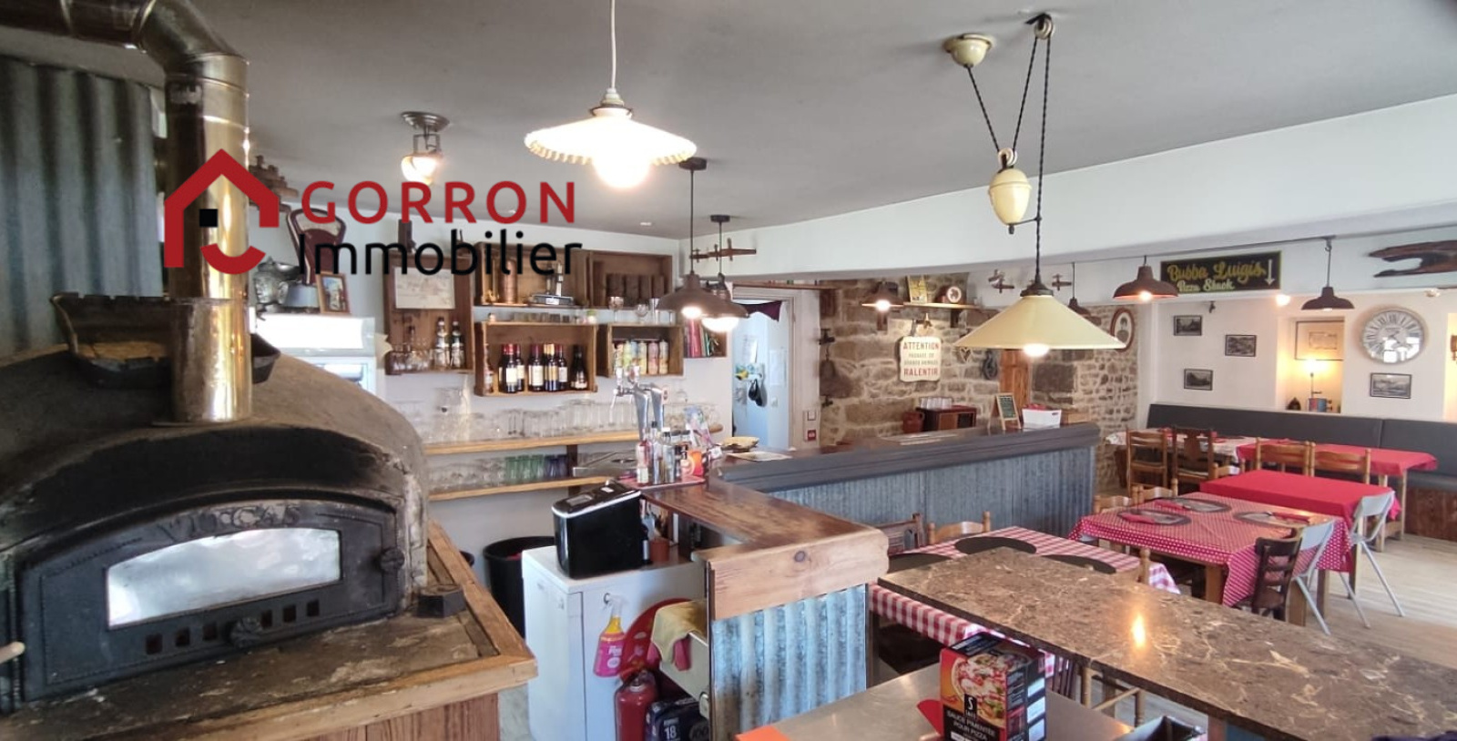 Local commercial (actuellement pizzeria bien réputée) : Salle de restaurant pouvant avoir jusqu'à 30 couverts, avec four à pizza traditionnel au feu de bois, bar et cuisine. Terrasse devant le restaurant pour environ 15 couverts. Grand parking à proximité.