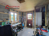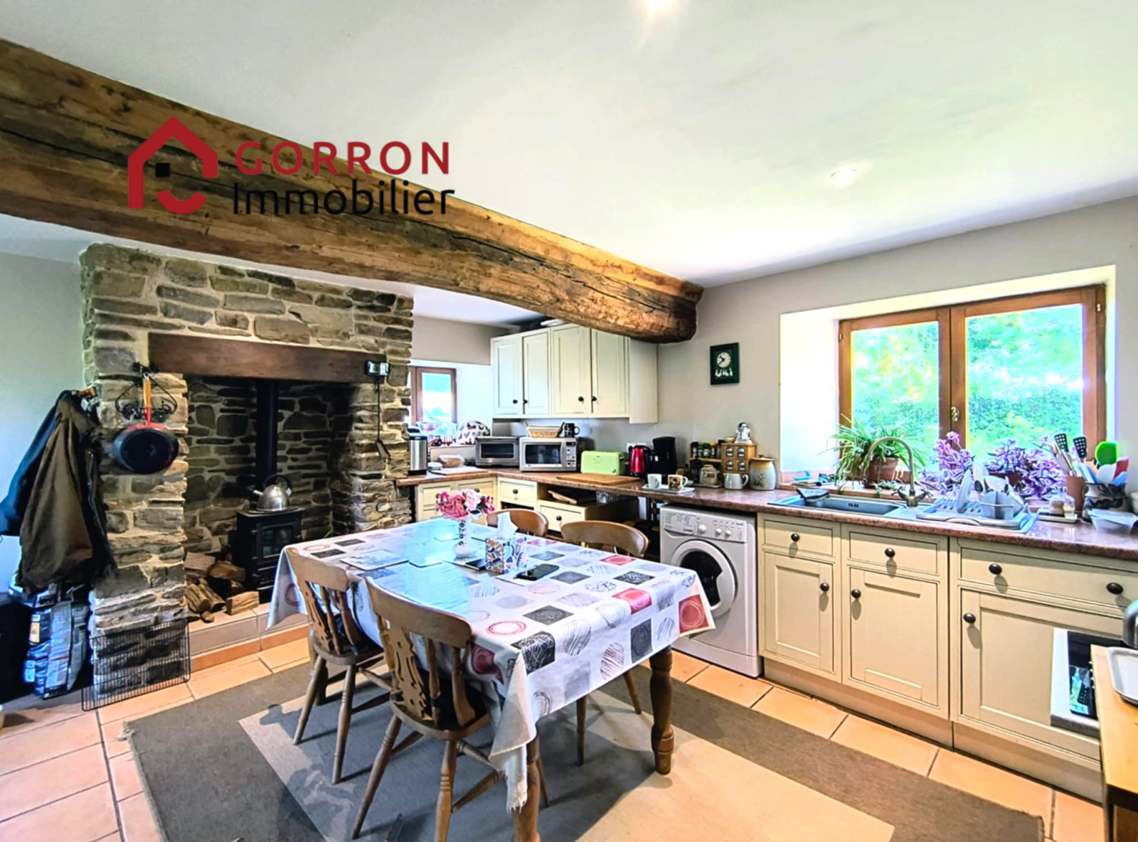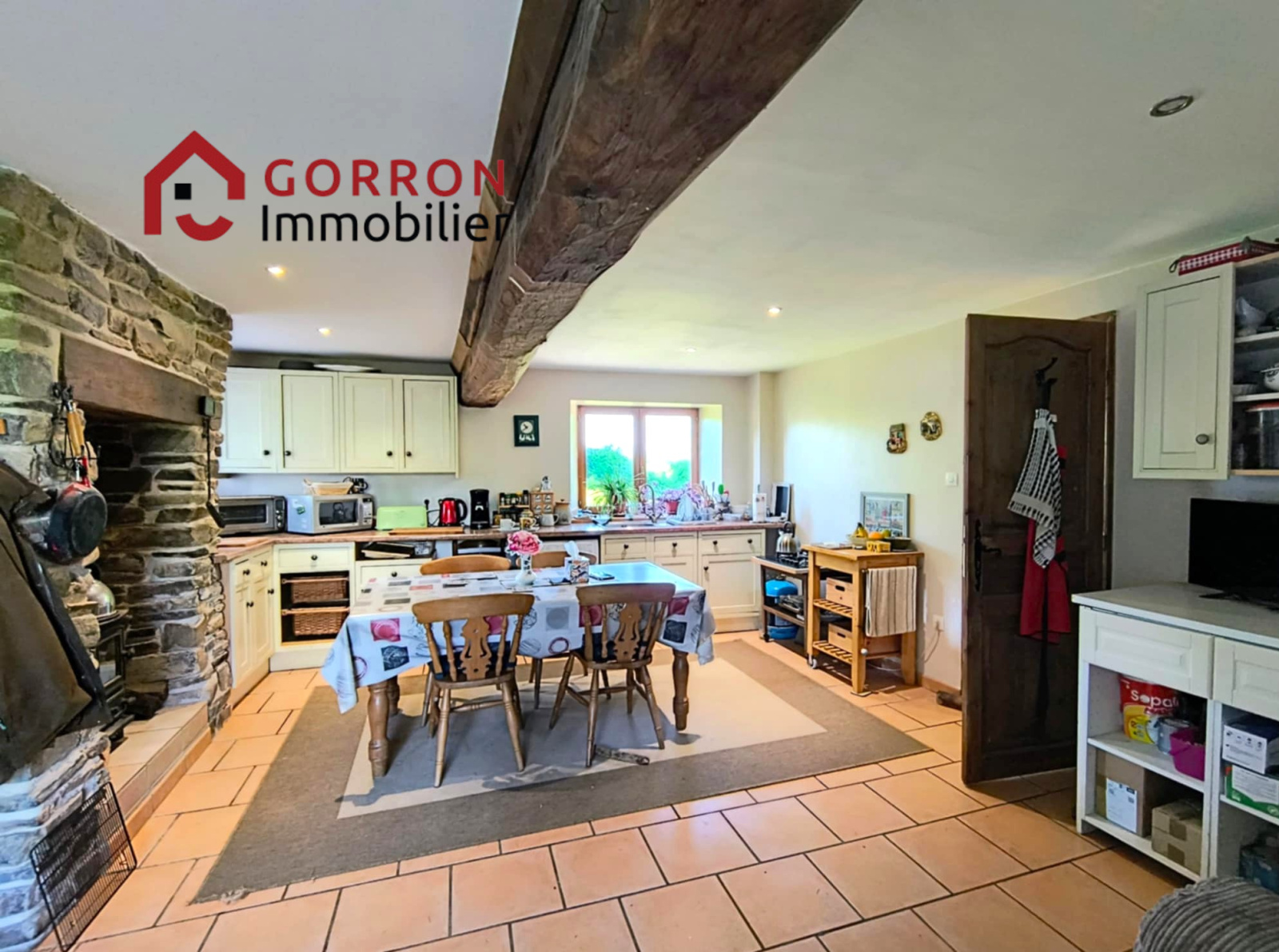 Au rez-de-chaussée : entrée (travaux à finir), cuisine avec cheminée en pierre et petit poêle à bois, salon avec cheminée en pierre et poêle à bois.