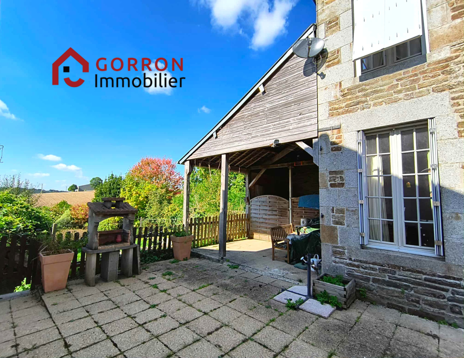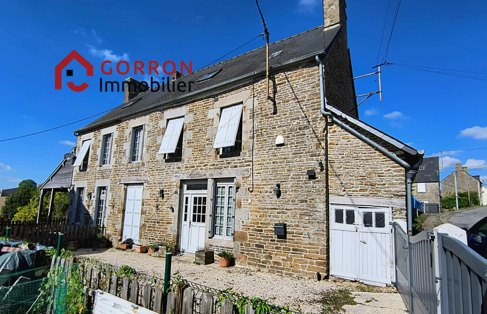 À l'extérieur, cour gravillonnée close, terrasse couverte, jardin et dépendance en pierre.