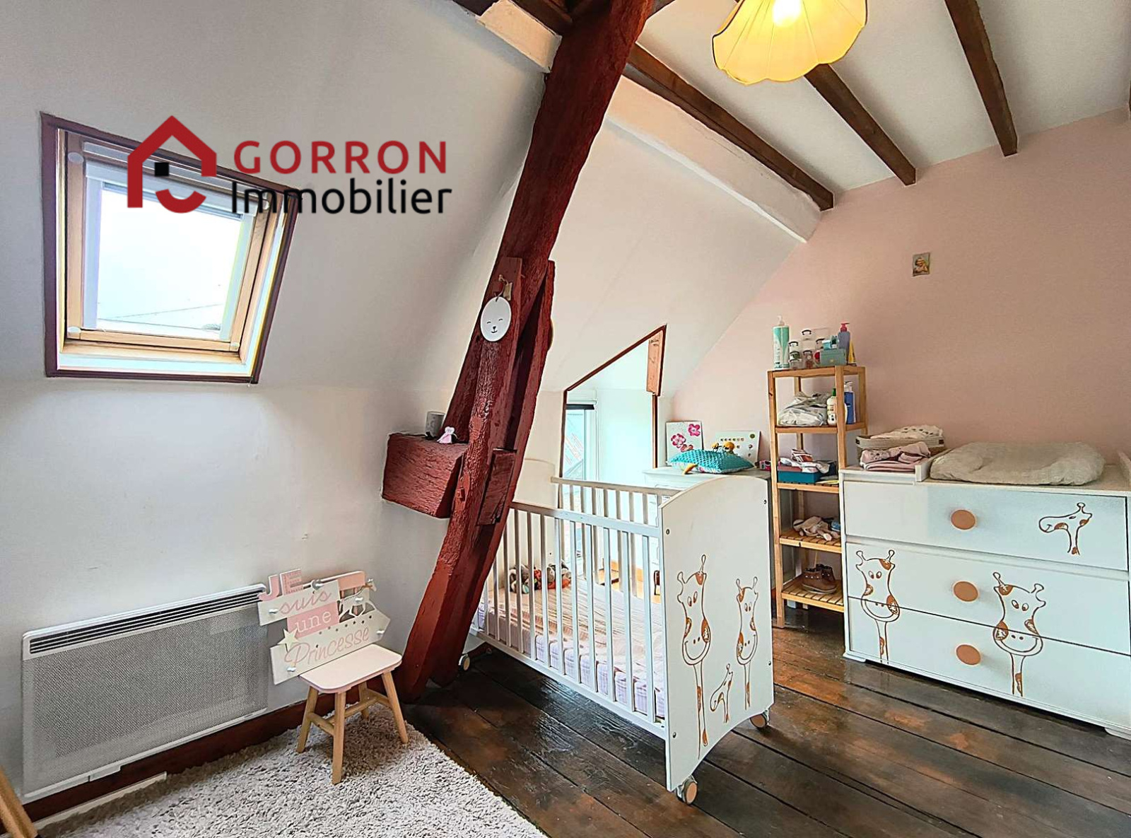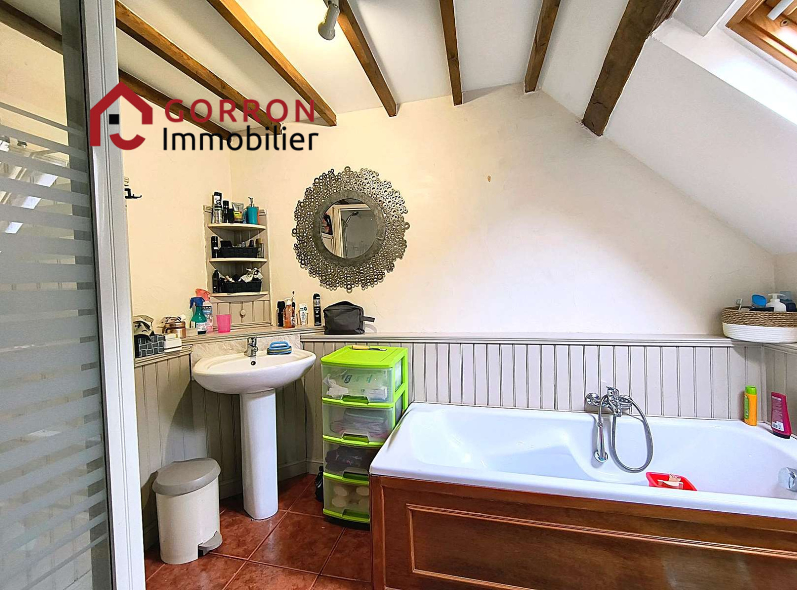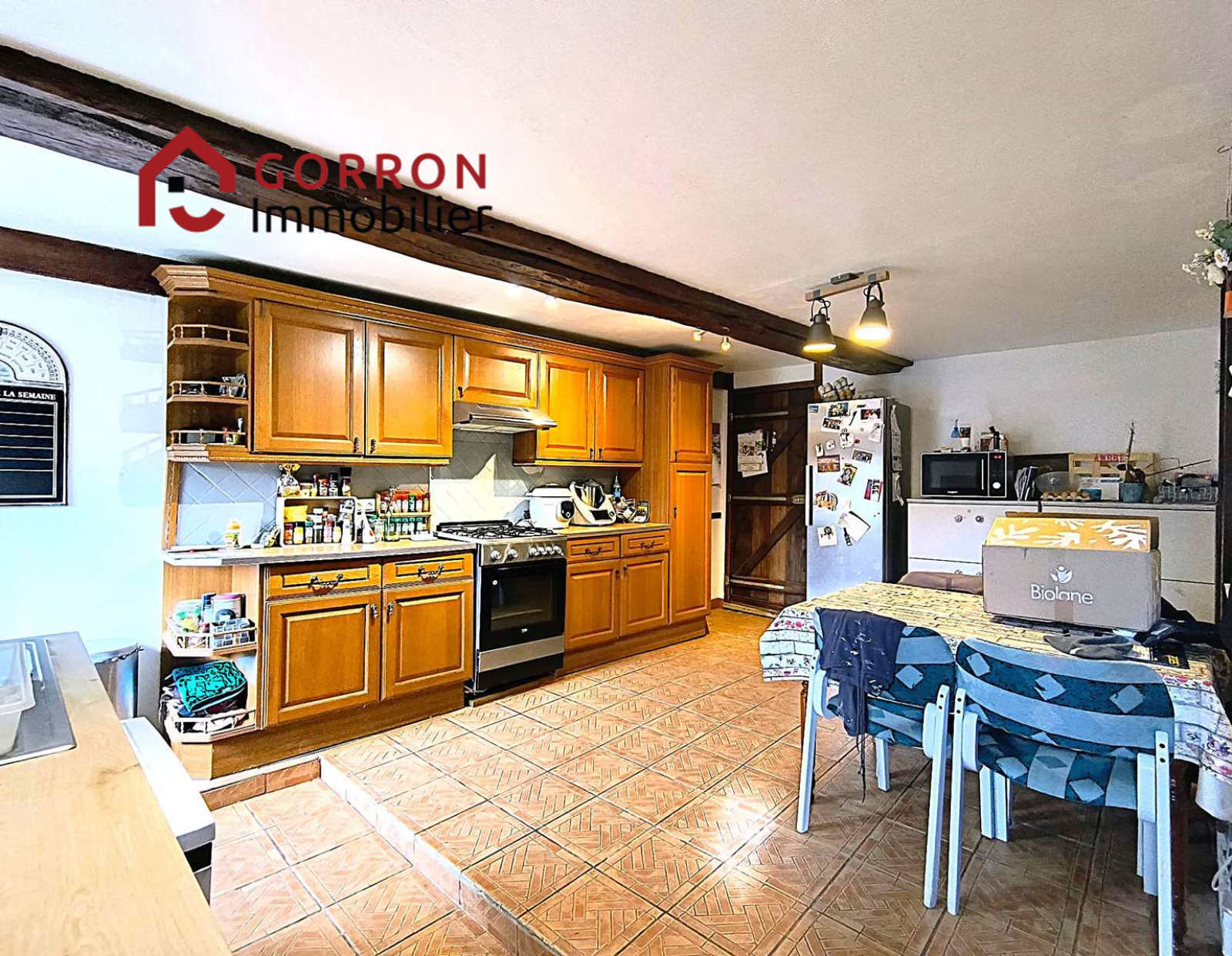 Au rez-de-chaussée : cuisine aménagée, salon avec poêle à bois, buanderie avec douche, WC.
