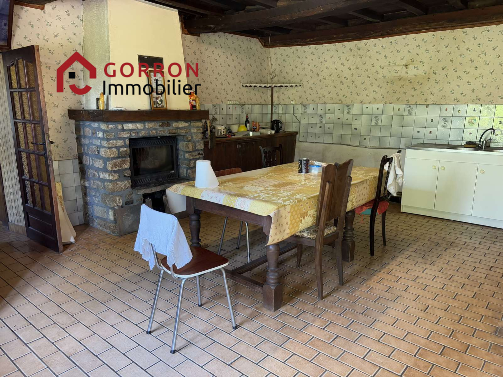 Au rez-de-chaussée : cuisine avec cheminée et insert, séjour, grande chambre, salle d'eau, wc.