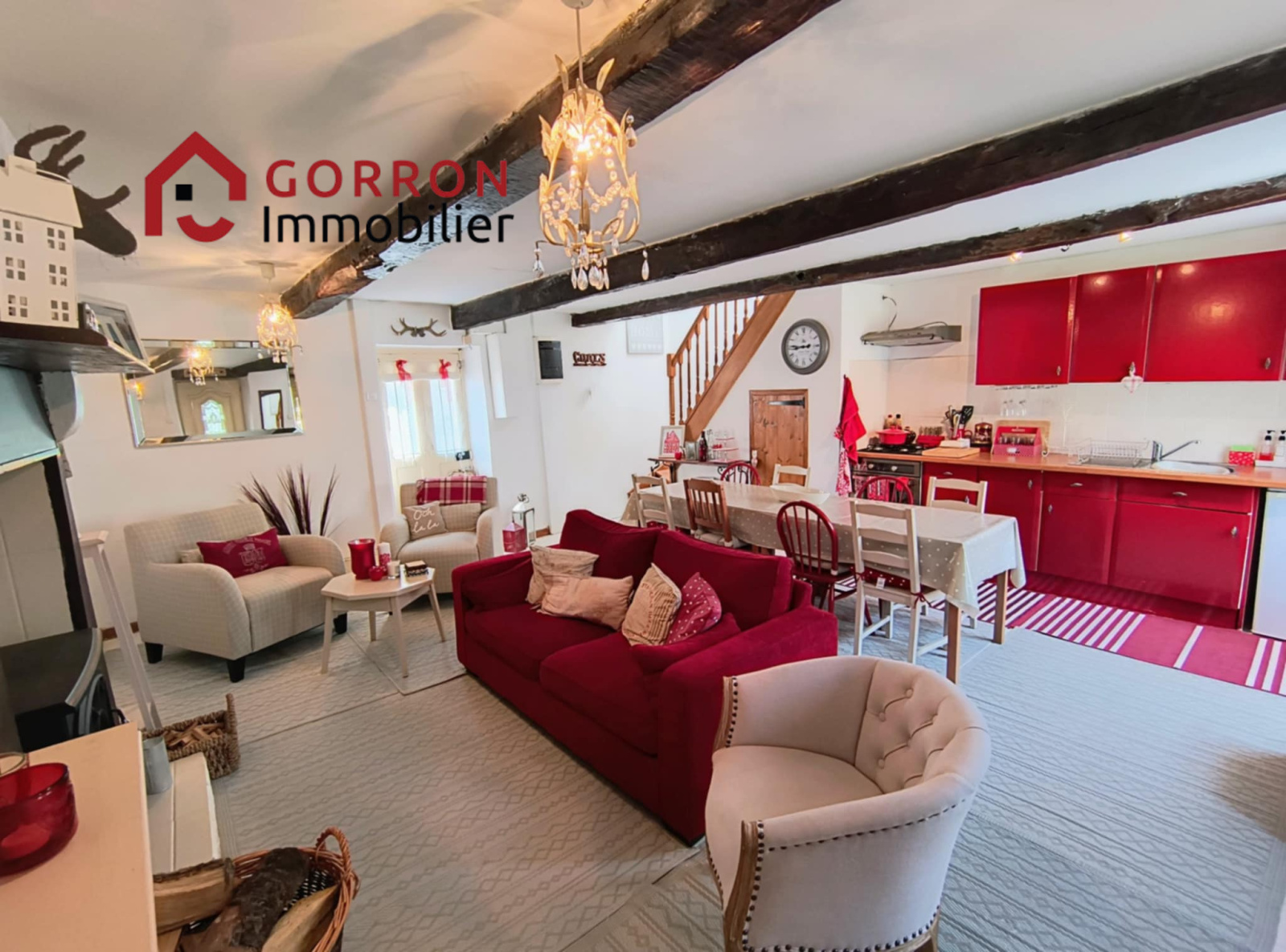 Maison (environ 49 m²) composée de: au rez-de-chaussée : cuisine aménagée ouverte sur séjour avec cheminée. Au 1er étage : 3 petites chambres, salle de bains avec wc.