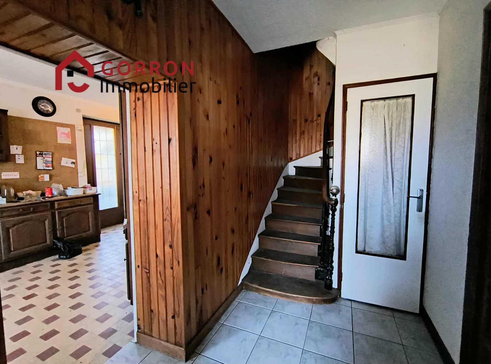 Au rez-de-chaussée : ehall d'entrée,cuisine,salon/salle à manger avec poêle à bois, wc.