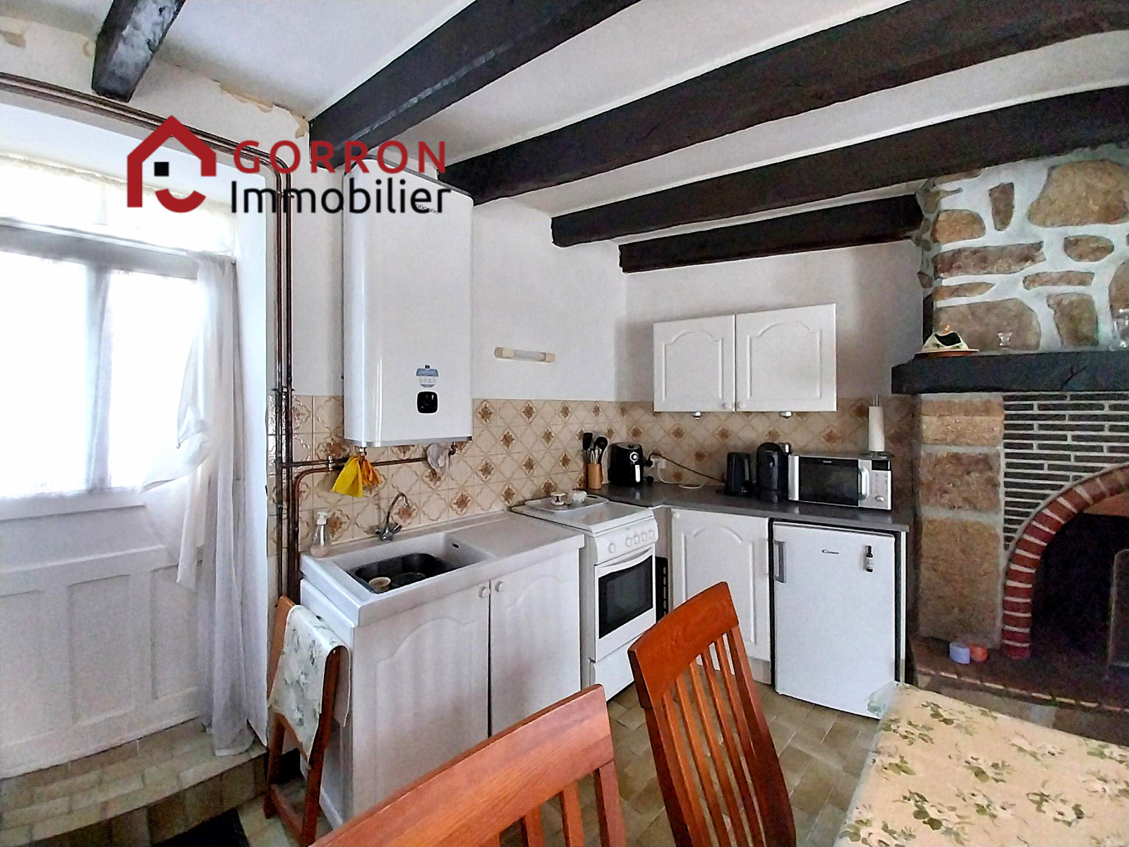 Au rez-de-chaussée : hall d'entrée, pièce de vie avec cuisine, avec cheminée, chambre, salle d'eau, wc.