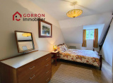 RDC : hall, salon, cuisine aménagée/salle à manger avec poêle à bois, salle d'eau + WC.