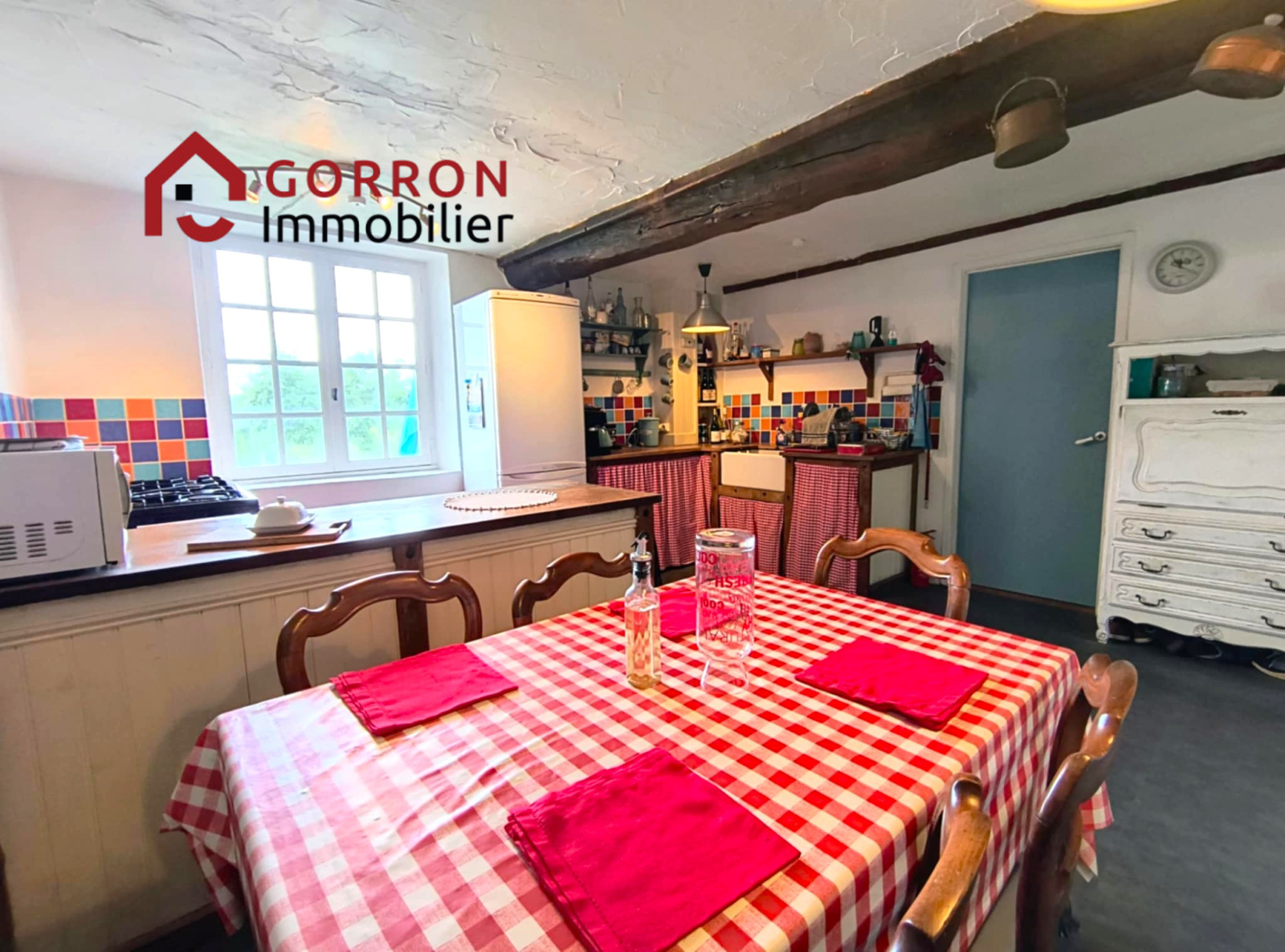 Au rez-de-chaussée : hall d'entrée, cuisine-salle à manger, salon spacieux et lumineux avec poêle à bois et porte donnant directement sur le jardin.