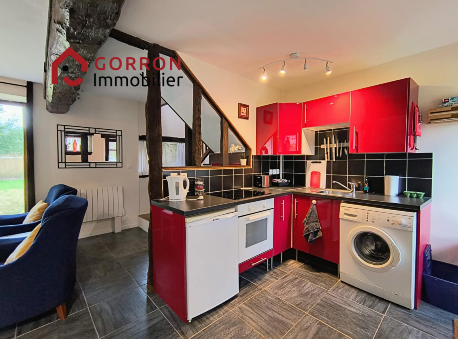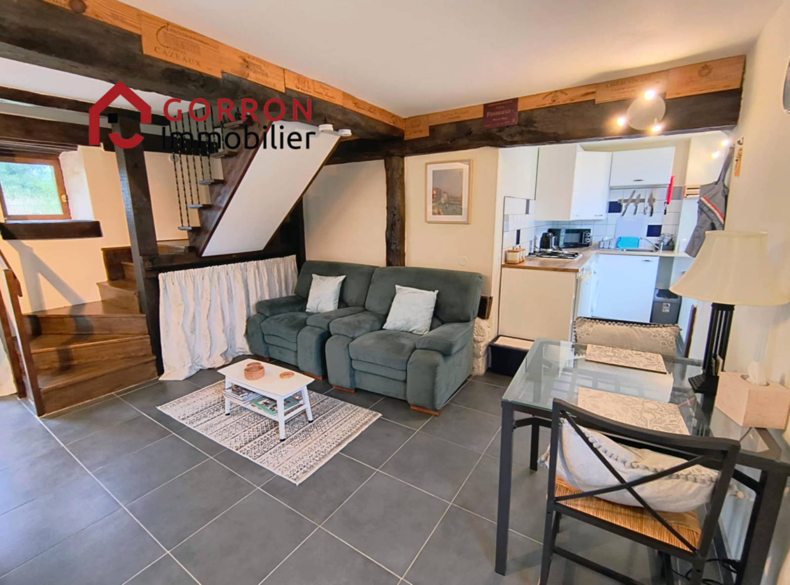 Au rez-de-chaussée, d'une cuisine ouverte sur séjour. Et au 1er étage, d'une chambre avec salle de bains et WC.