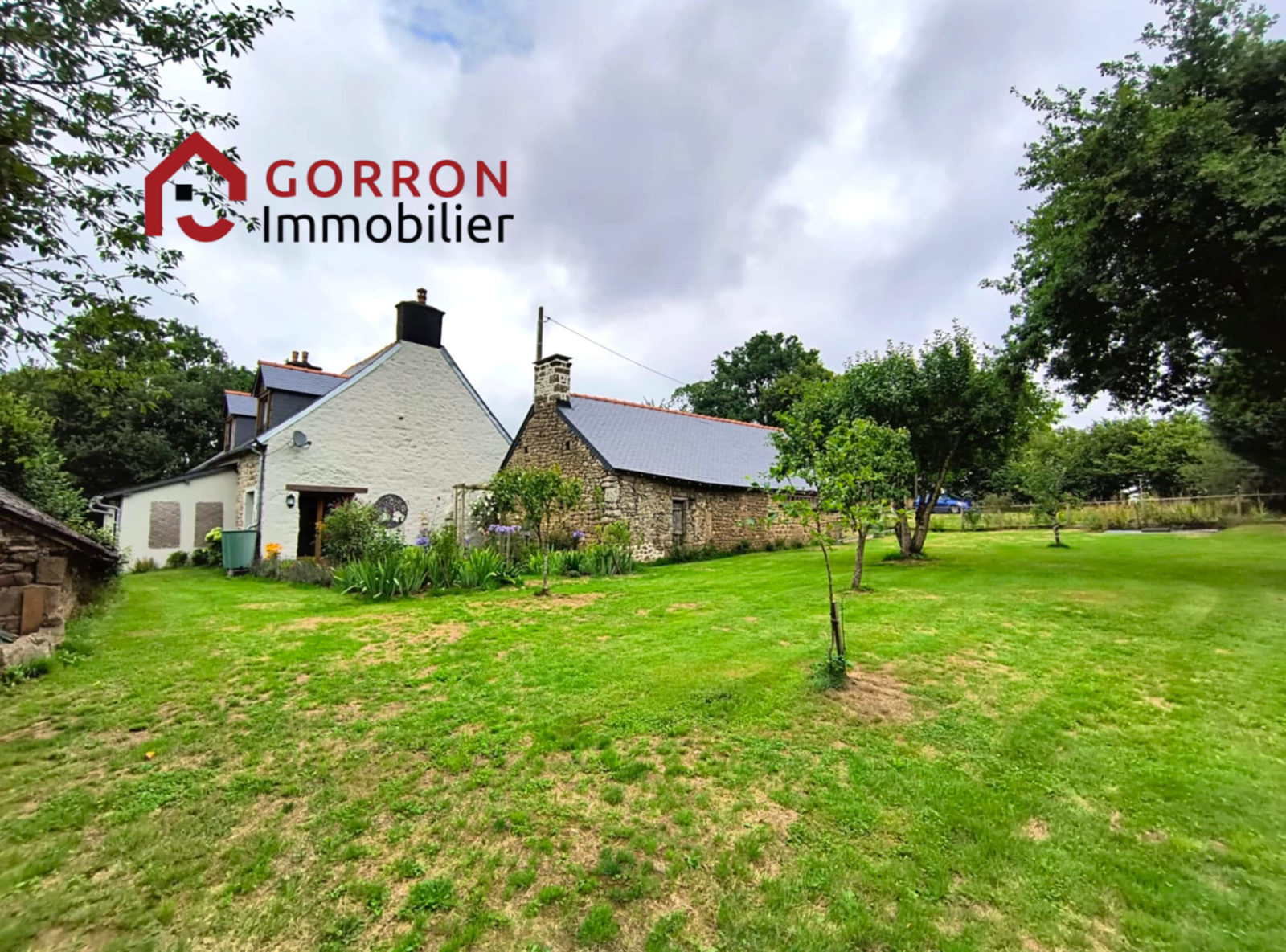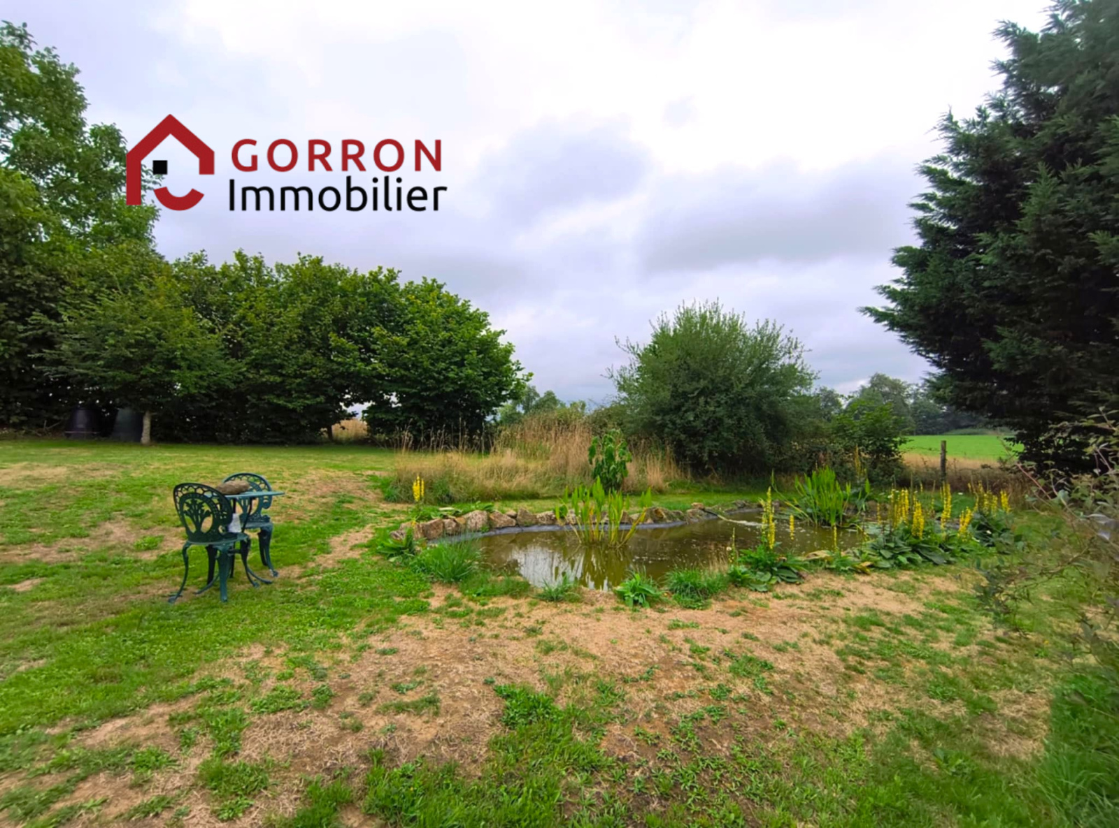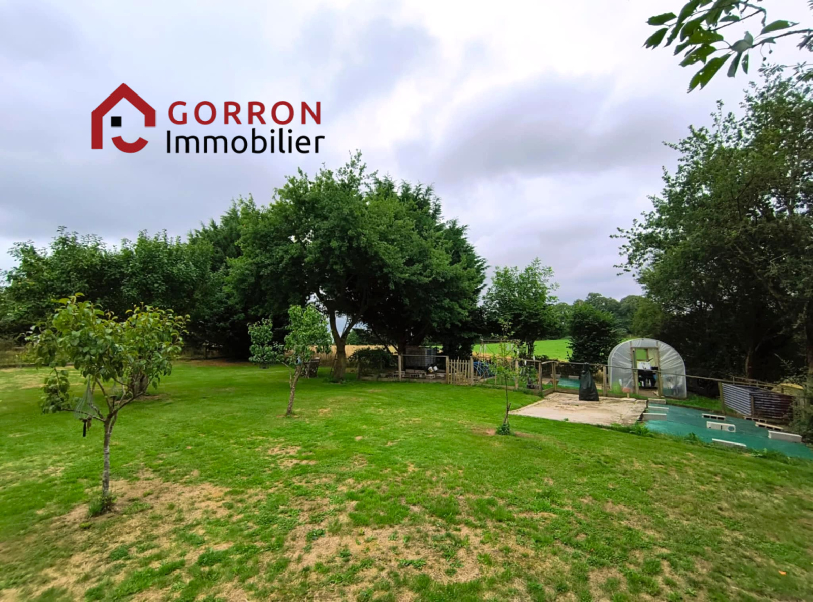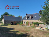 A l'exterieur : grande cour à l'avant, espace parking et terrain arboré autour. Avec des dépendances en pierres.
