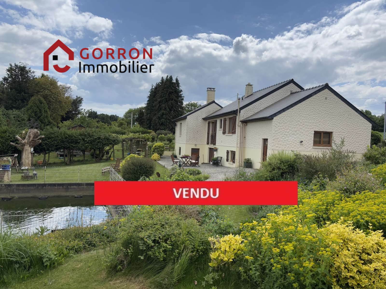 Joli jardin arboré avec marre. Le tout sur env. 2300 m².