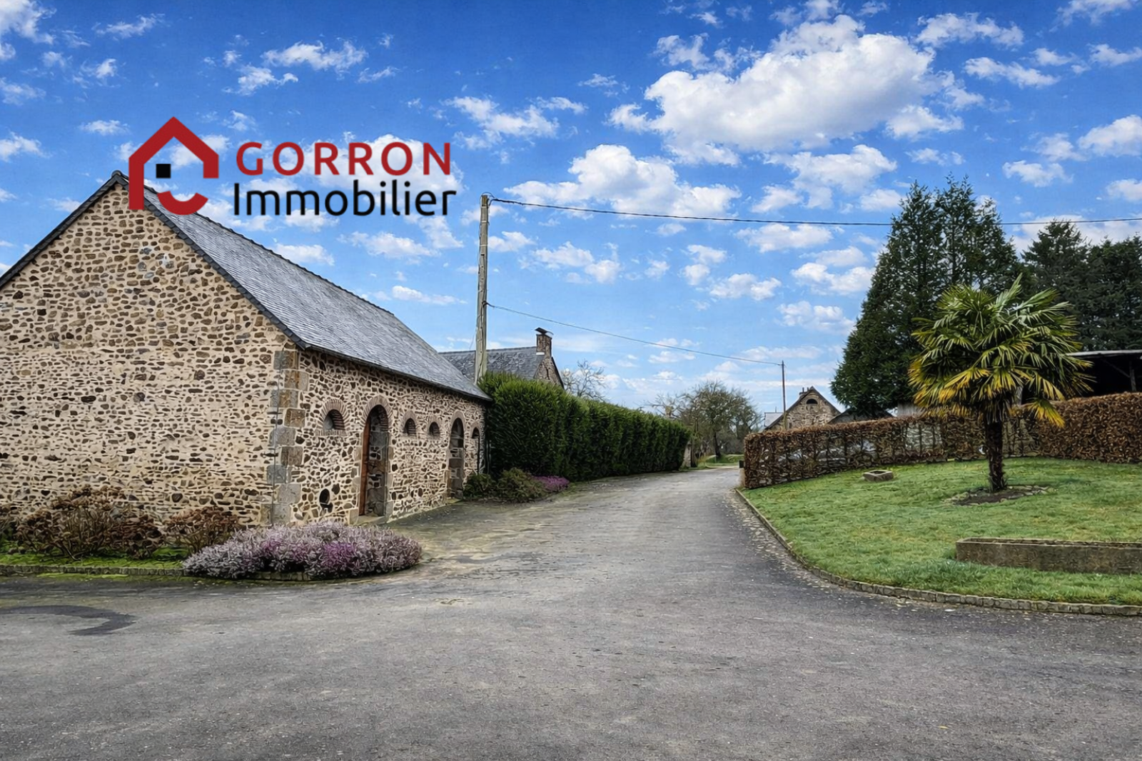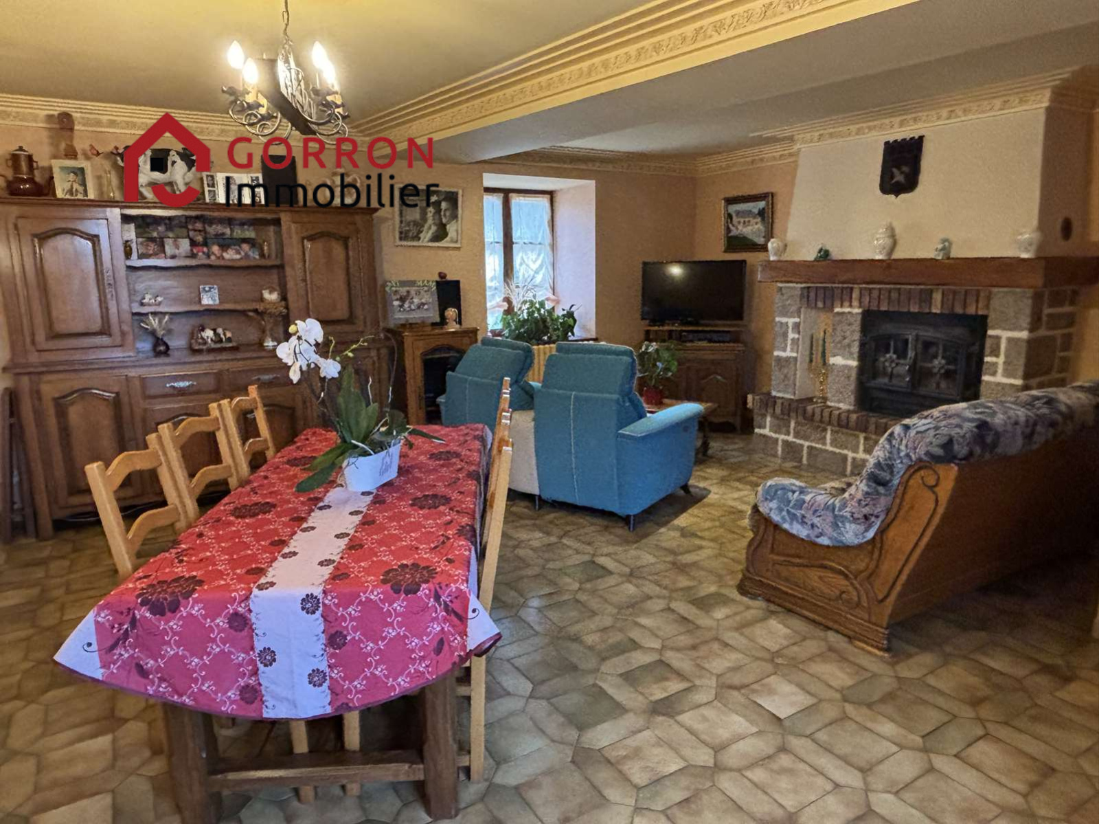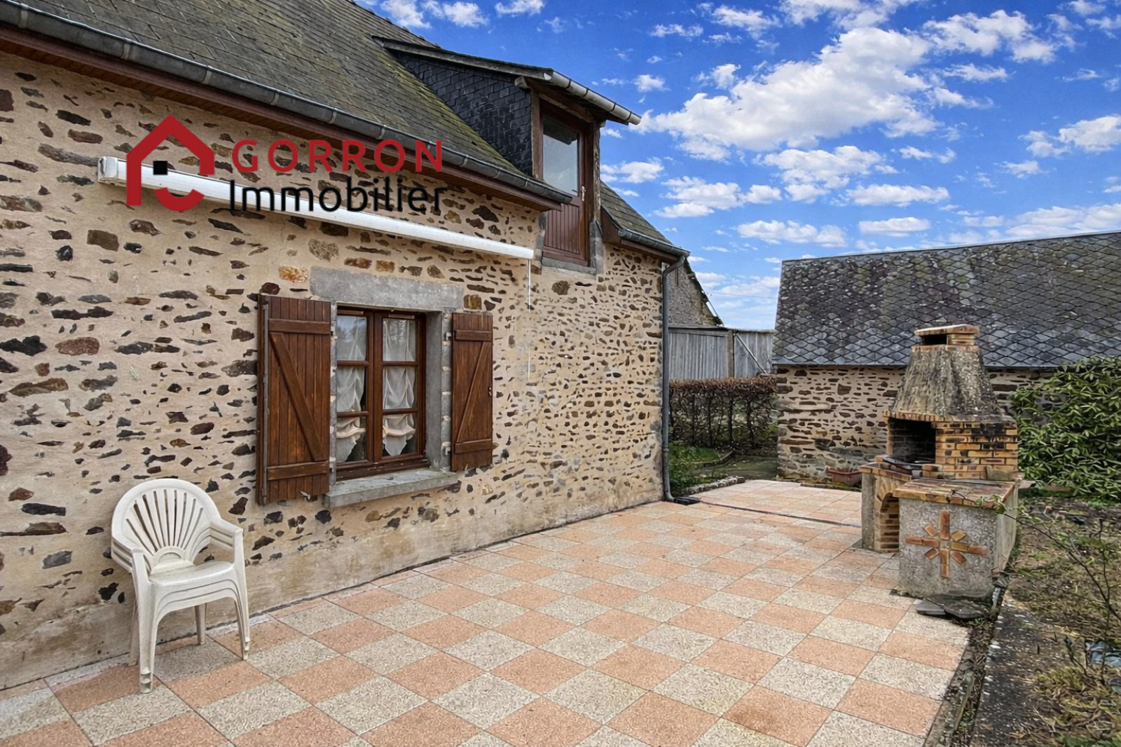 Avec grand garage attenant, cave et ancienne grange en pierres.