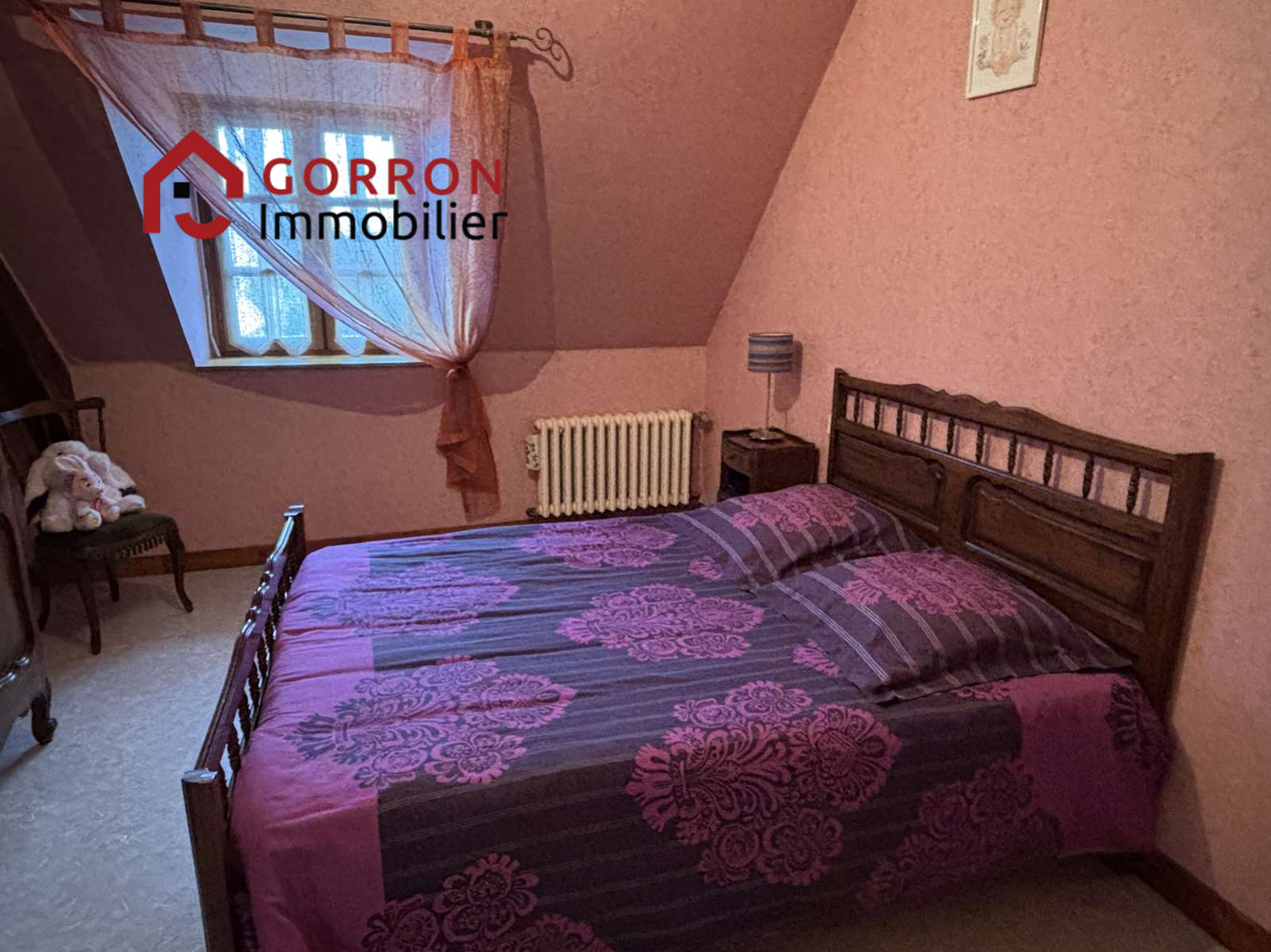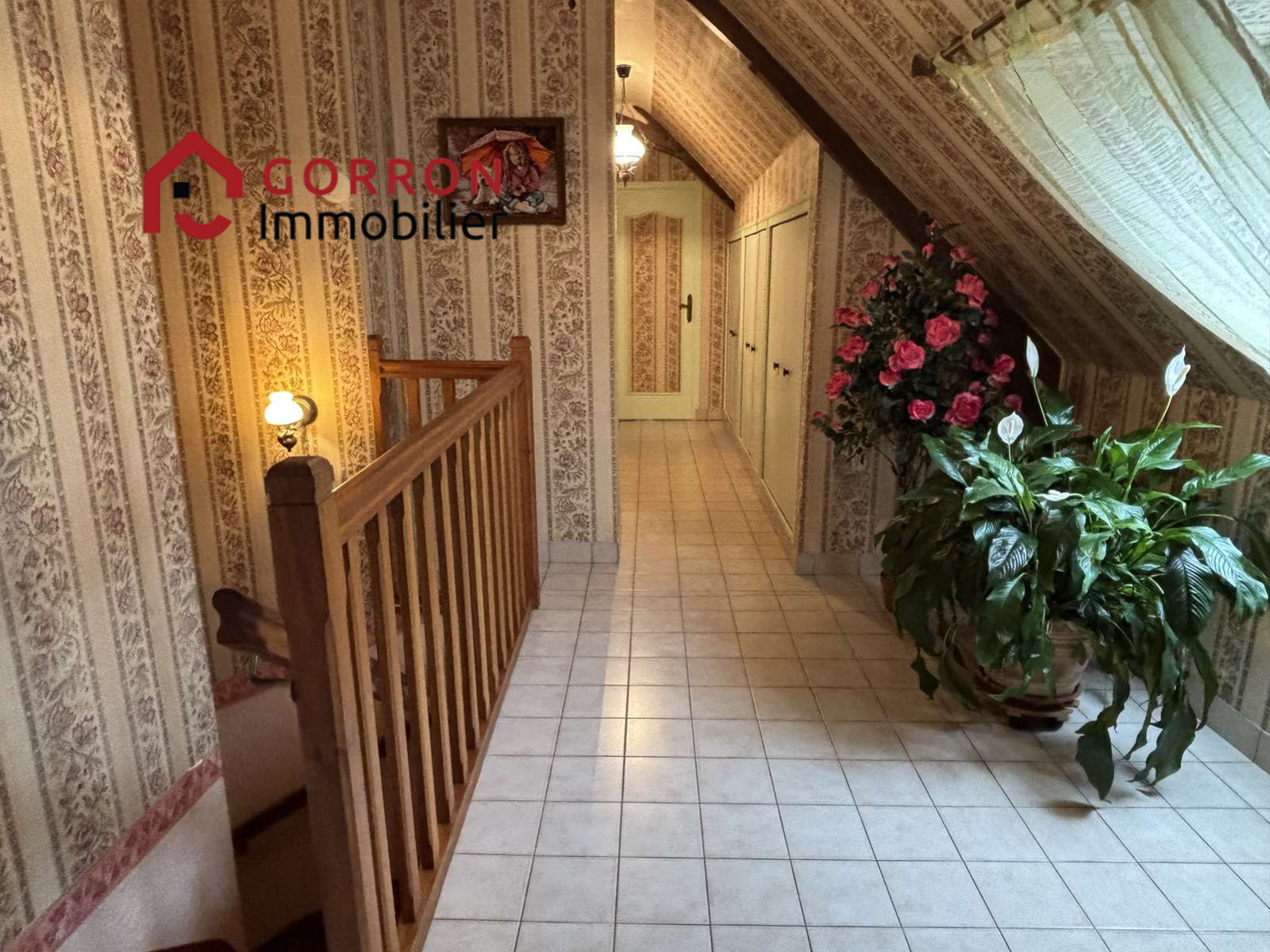 Au 1er étage : d'un côté, palier, chambre, bureau, salle d'eau avec wc et de l'autre côté, palier, 3 chambres dont une plus petite, salle de bains, wc.