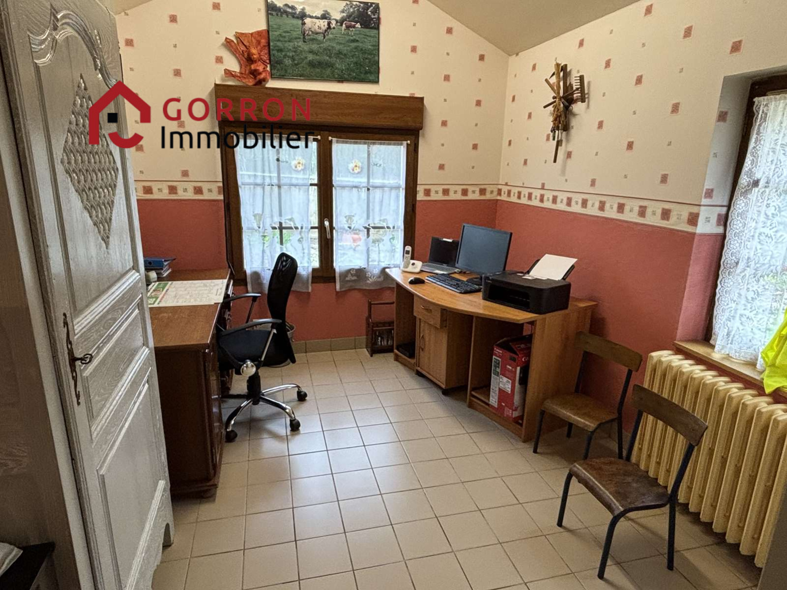 Au rez-de-chaussée : entrée, séjour avec cheminée et insert, cuisine aménagée, bureau pouvant être utilisé comme chambre, chaufferie.